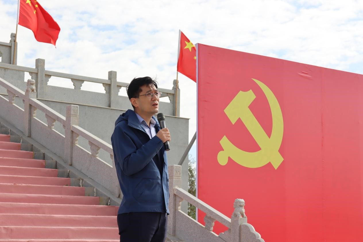 在当地疫情防控政策允许下,全体成员于上午9点来到烈士陵园,园内庄严肃穆又生机勃勃,在人民烈士纪念碑前开始活动。活动伊始,由教师党员代表和学生党员代表共同向先烈敬献花篮。随后,全体师生向纪念碑默哀、鞠躬致敬,表达对革命烈士的敬意。