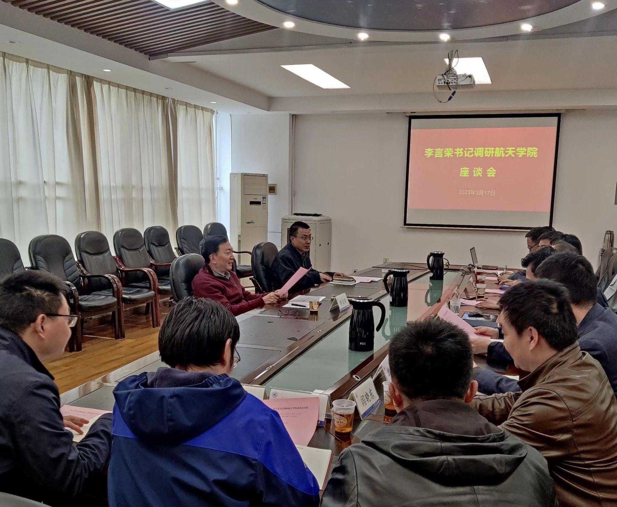 调研指导工作,与学院领导班子成员、各研究所所长以及教师代表座谈交流。