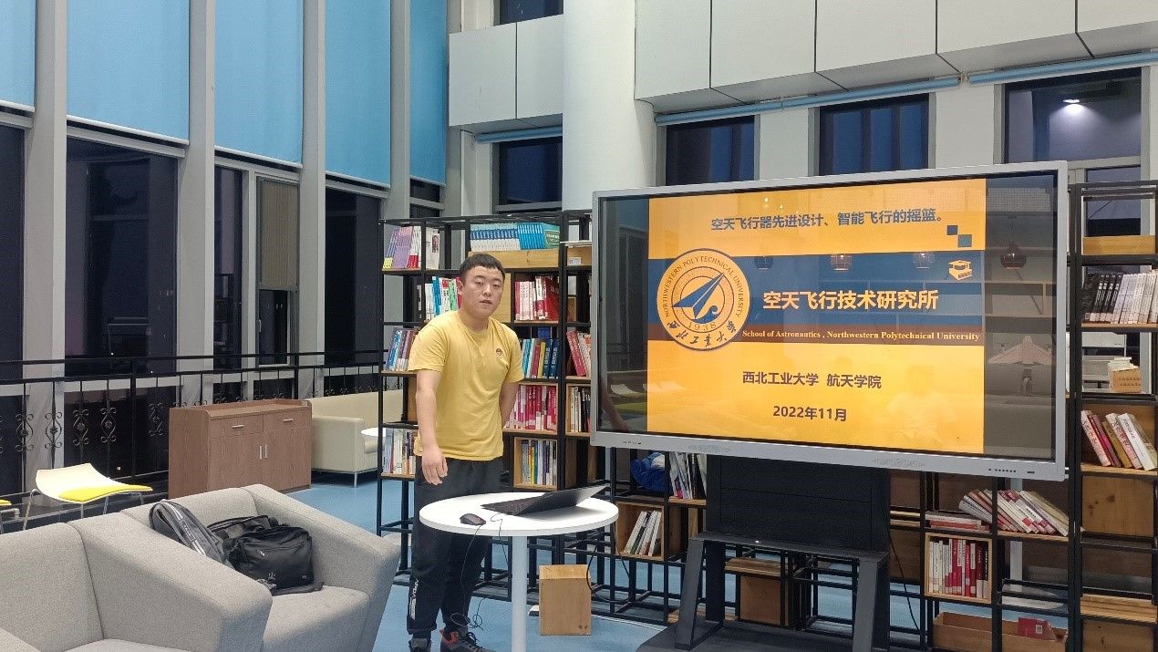 航空航天工程专业本科生党支部书记刘松语同学针对空天飞行技术研究所情况进行分享。西北工业大学空天飞行器系统设计与优化团队主要从事天地往返飞行器、高超声速飞行器、先进导弹武器等飞行器的设计、优化、仿真、评估等研究工作,开展各类空天融合飞行技术探索,参与多项国家重大科技项目,与航天、航空、兵器等众多科研院所深度开展合作。团队立志于打造国际一流科研平台,培养行业领军人才,为国家空天领域重大装备研发和重大科技计划提供支撑。同时作为本科时期飞天班的一员,他还和现场的2021级飞天班同学积极互动,回答同学们关于未来方向选择上的疑问。