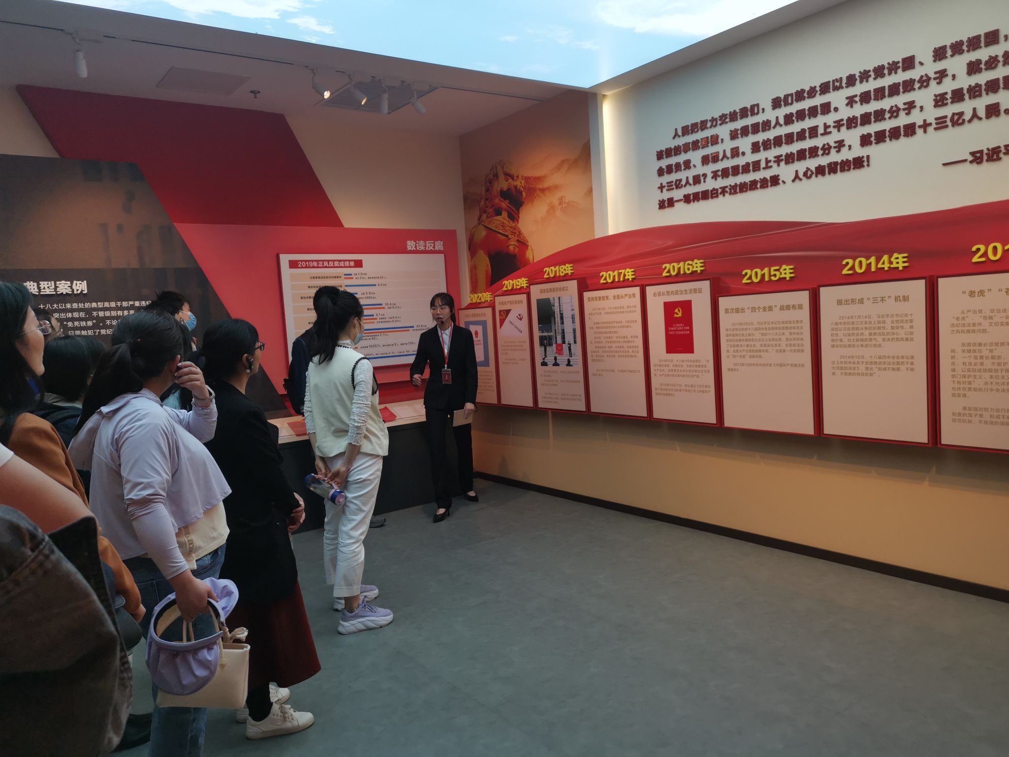 师生跟随教育基地工作人员的讲解,回顾管党治党的历程,了解我党在成立之初就立下规定,确立党章明确党纪、设立纪律检查制度一以贯之从严治党,在任何时期都坚持严格要求党员同志,绝不容忍贪腐行为。