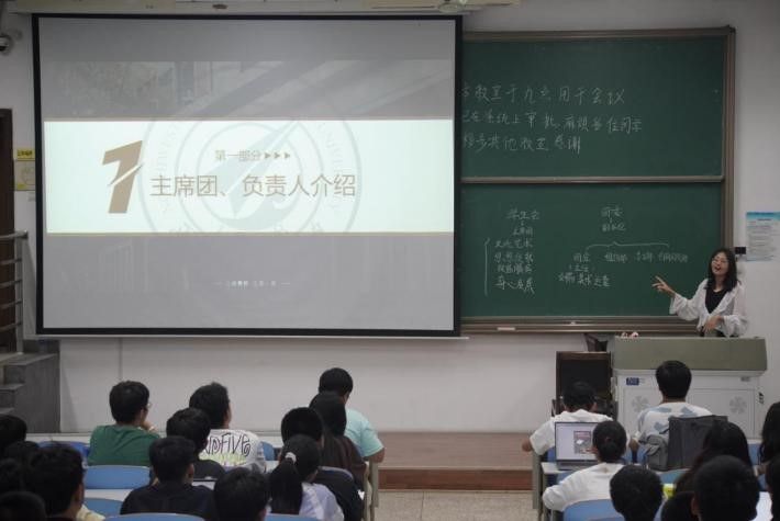 首先,学生会主席团成员刘洋介绍了各部门的结构和组成,让新同学们了解学生会及团委的组织架构,从而帮助大家更好地融入集体。接着,主席团成员、团委副书记(学生兼职)和各部门负责人依次进行介绍。