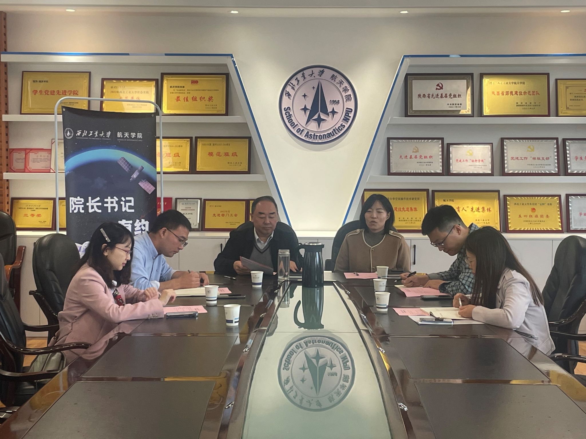 第三期“书记院长有约”活动在学院413会议室举行。本次活动主题是“飞天翱翔·共谋发展”,与青年教师面对面。执行院长岳晓奎、党委书记黄越、青年教师代表刘星、朱明珠、张烨、荣俊杰参加了本次活动。活动由党委书记黄越主持。