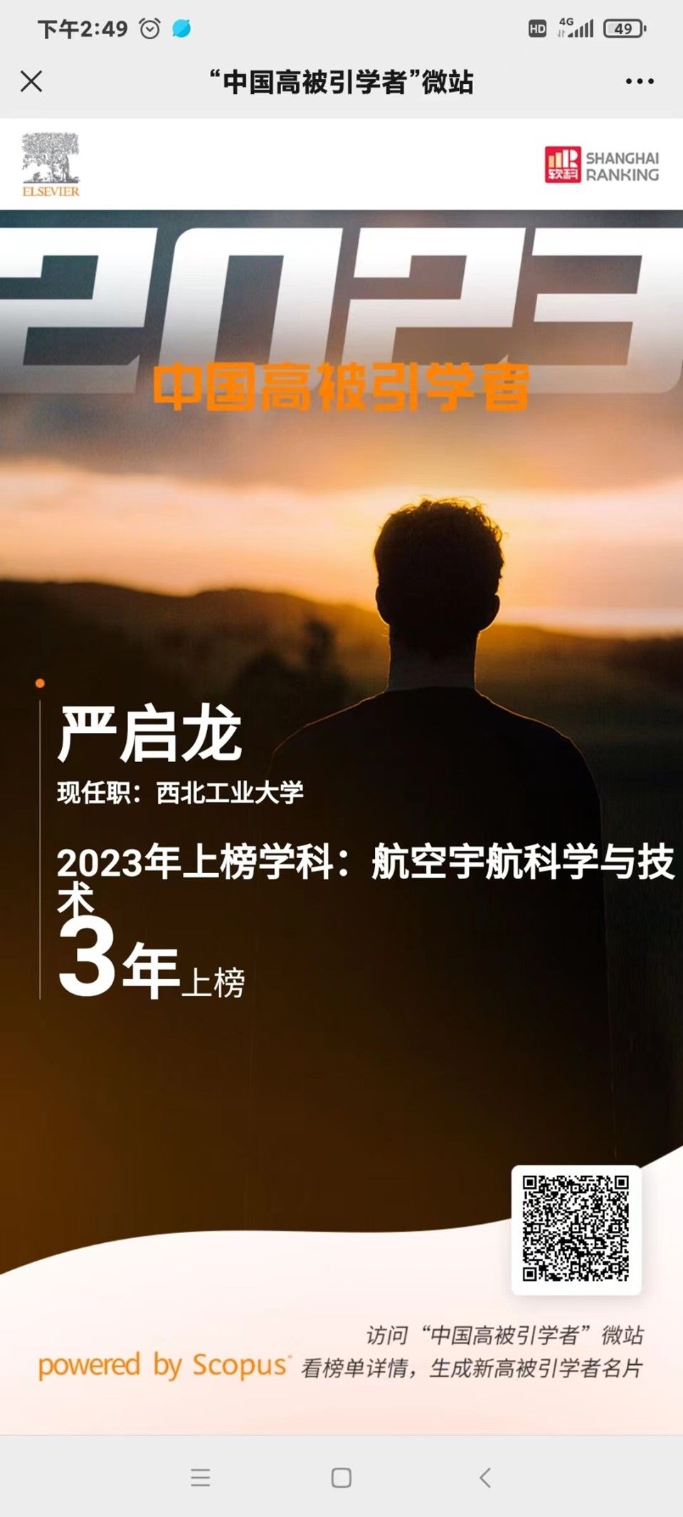 2024年3月27日,爱思唯尔 (Elsevier) 重磅发布2023“中国高被引学者” (Highly Cited Chinese Researchers) 榜单,成人电影