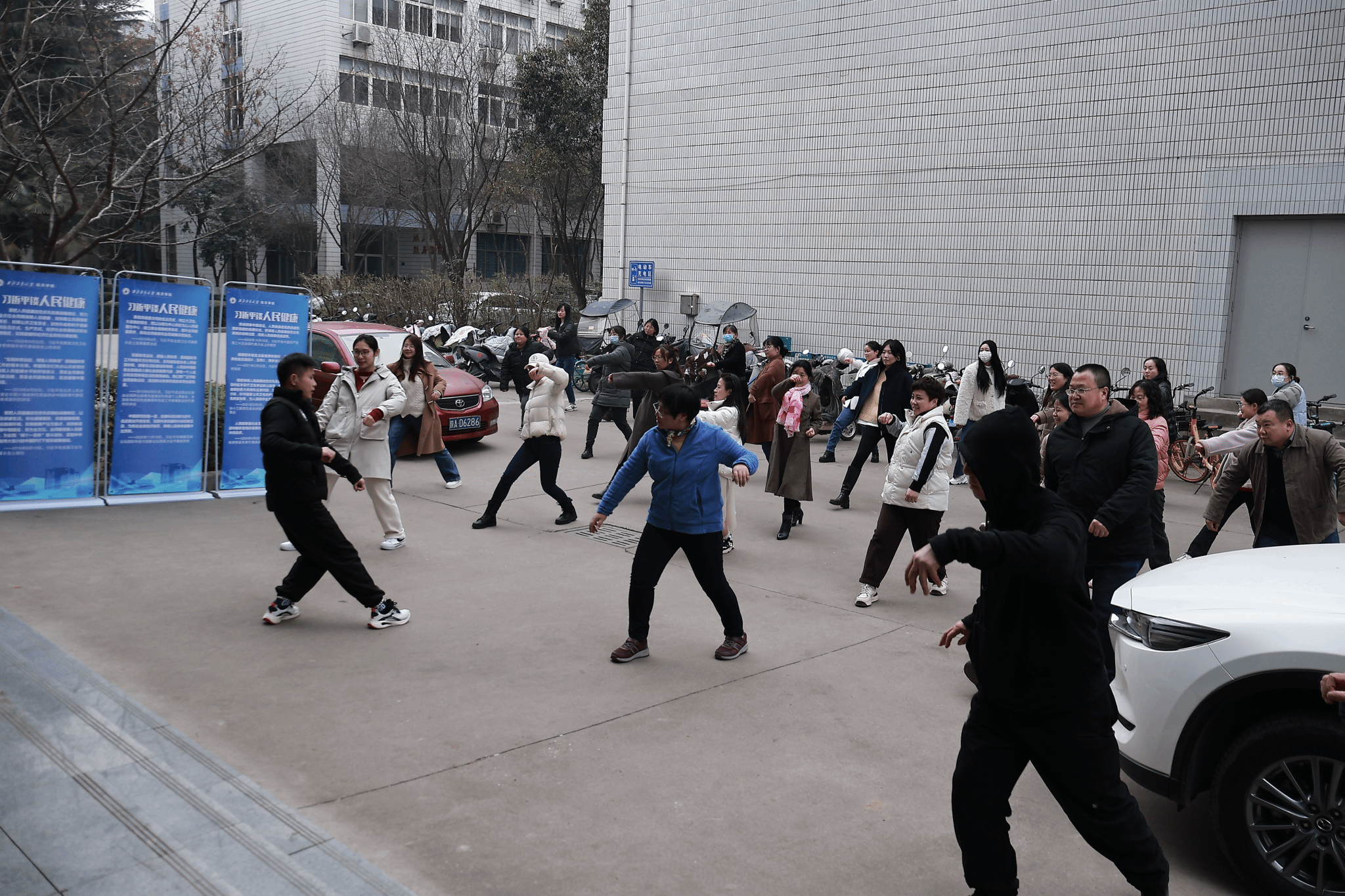 首先,体育部岳风杉老师为教职工教授五禽戏。五禽戏,作为中华传统养生功法,通过模仿虎、鹿、熊、猿、鸟五种动物的动作,调节呼吸、强身健体,对缓解久坐带来的身体不适具有显著效果。在岳风杉老师的专业指导下,教职工认真体悟动作要领,感受五禽戏带来的身心舒缓。大家逐渐进入状态,体会到传统养生功法的魅力。