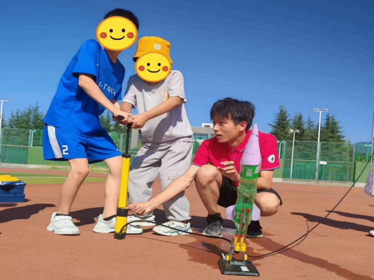 为了让孩子们更加直观地感受航天的魅力,活动还特别设置了动手实践环节。在实践队学生的指导下,孩子们亲手制作了水火箭,并在激动人心的时刻与志愿者们一同放飞。