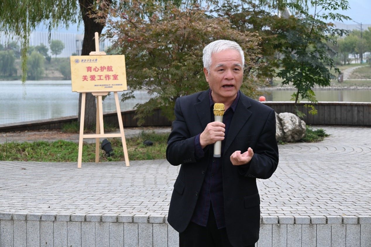共建工作室情况。他讲到,学校关工委以“四个一”访谈活动为基础,积极推进宣讲访谈育人工作,发挥“五老”亲历者、见证者、实践者的优势,教育引导青年学子胸怀“国之大者”,赓续西工大现象。今天,到场的“银发”宣讲员给同学们带来了故事、节目,他们对青年学子的健康成长充满关怀。学校关工委与成人电影