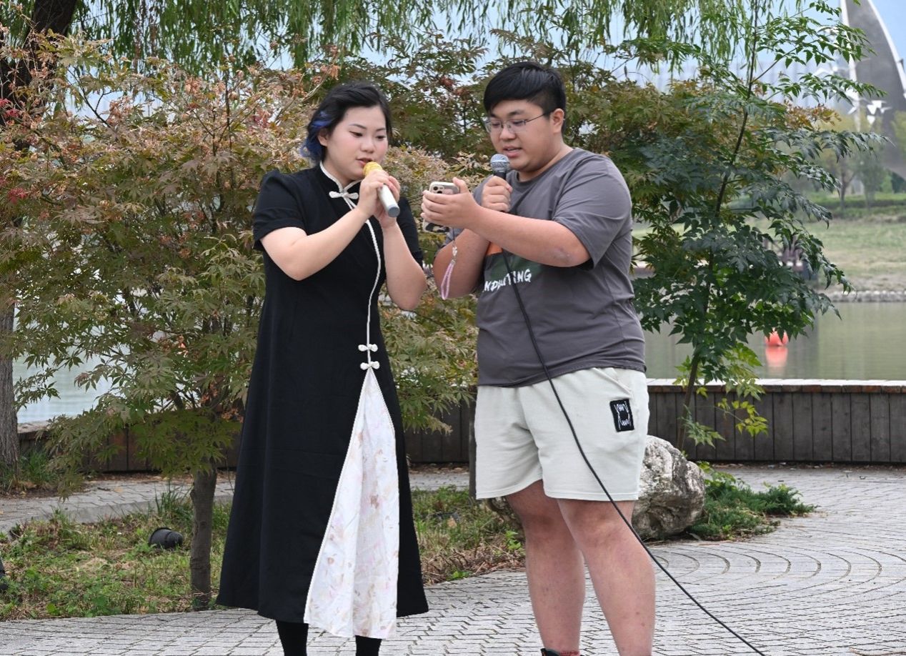 随后,她又与2021级本科生李秉文合唱了一首《我会等》。