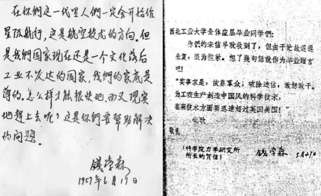 图|钱学森分别在1957年和1958年给西北工业大学师生的致辞