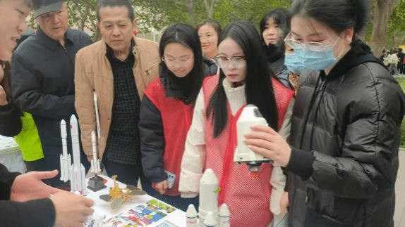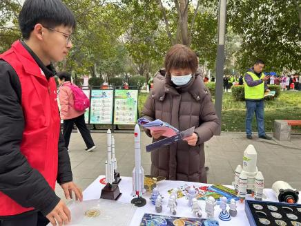 学生航天科普志愿者服务队(简称"航普")作为全省科普宣讲类重点项目团队,在西安市兴隆园社区主会场开展志愿服务项目省级示范活动。