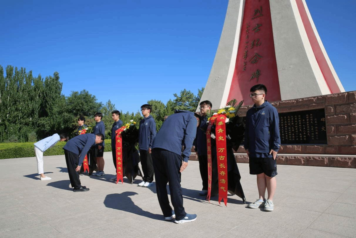 学生代表向纪念碑敬献花篮,全体人员脱帽肃立并进行集体默哀,以无声的悼念表达对英烈的深切缅怀。