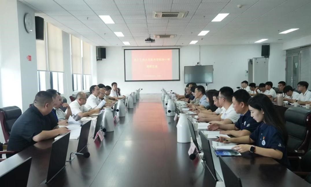 当日下午,实践队前往航天科工十院十部。从早期导弹武器系统的艰辛研发,到如今智能装备领域的前沿成果,十部的发展历程让队员们深刻体会到“高水平科技自立自强”的时代分量。双方就前沿技术合作、毕业生就业导向等议题交换了意见,共同致力于为青年学子搭建从校园到产业的坚实成长桥梁。