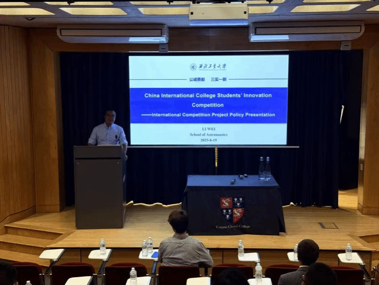 本次行程中,李伟老师面向剑桥大学师生,主持了“中国国际大学生创新大赛——国际竞赛项目政策宣讲会”。在宣讲会上,李伟老师详细介绍了该国际竞赛的相关政策,旨在吸引和激励全球优秀学子参与创新竞赛,深化西工大在“三大赛”项目中的国际教育合作。