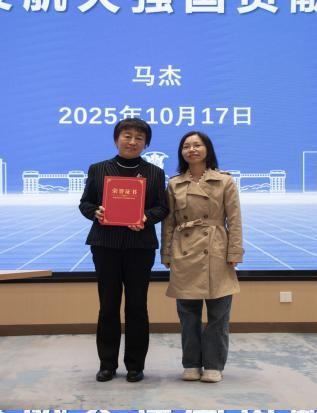 思政教育校外指导老师聘任证书,对她为同学们带来的精彩讲座表示衷心感谢,也希望未来能继续加强交流,共同助力航天人才培养。