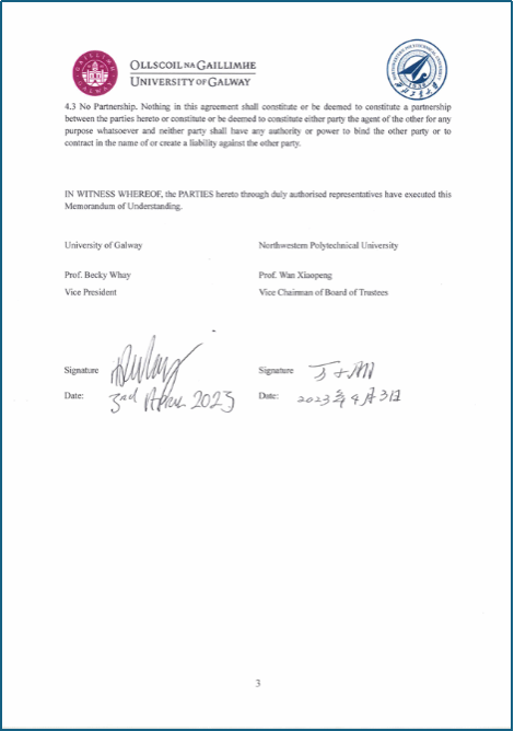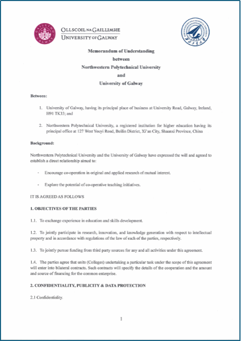爱尔兰高威大学与西北工业大学有着良好的合作基础,双方于2023年签署战略合作协议,并开展高层领导互访,师生交流,暑期游学,合作科研等项目。以下为两校战略合作协议成人电影与末页。