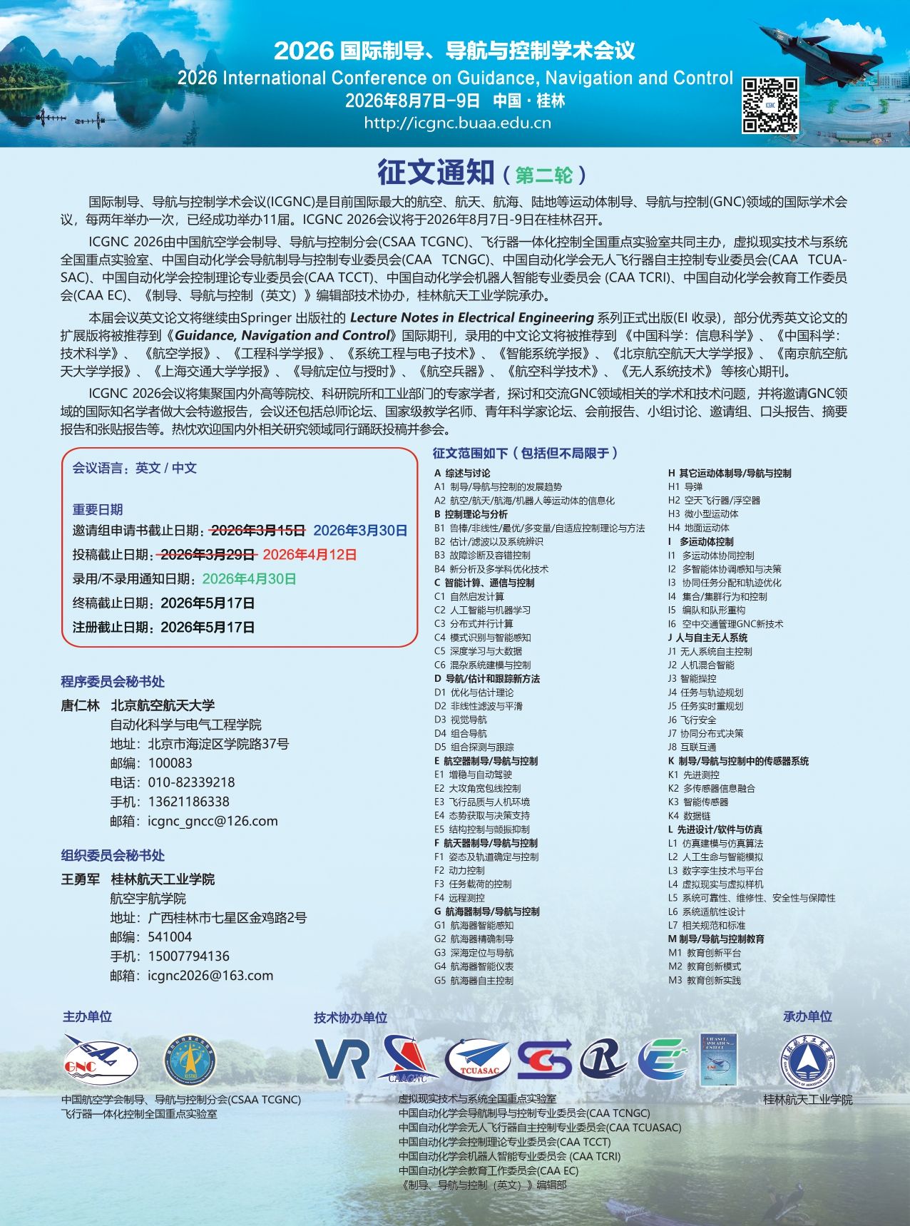 2026 国际制导、导航与控制学术会议征文通知(第二轮)