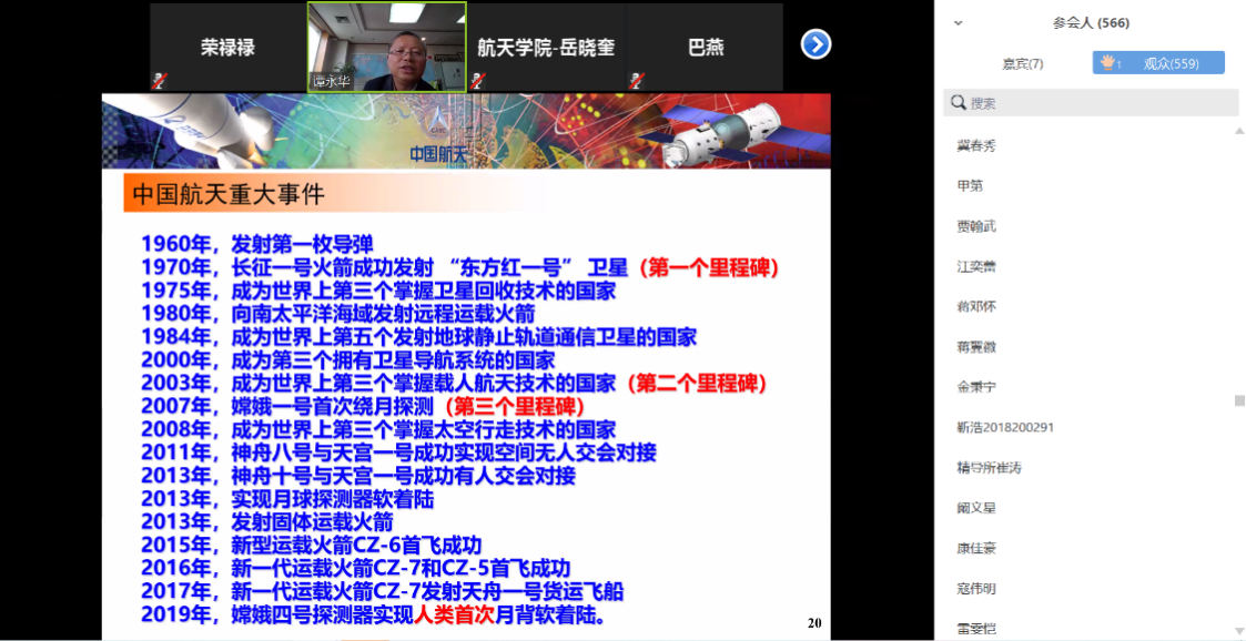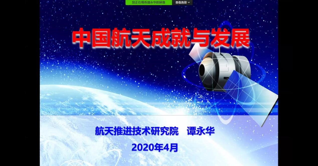 4月22日,在第五个“中国航天日”来临之际,西北工业大学举办翱翔名家讲堂,西北工业大学知名校友、中国航天科技集团第六研究院谭永华研究员作题为《中国航天的成就与发展》,近千名师生齐聚云端聆听了本场报告,报告会由成人电影