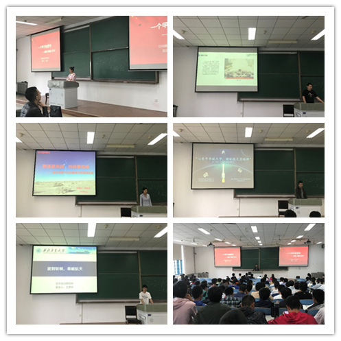 “宣讲队”成员杨登峰的报告主题为:心系中华航天梦,铸就航天里程碑。他讲述了学院空天飞行技术研究所师生团队攻关重大航天科研项目的奋斗故事,并分享了奋斗故事中的感人细节,他让同学们了解到了西工大航天人为我国的航天工程、尤其是载人航天工程所做出的杰出贡献。