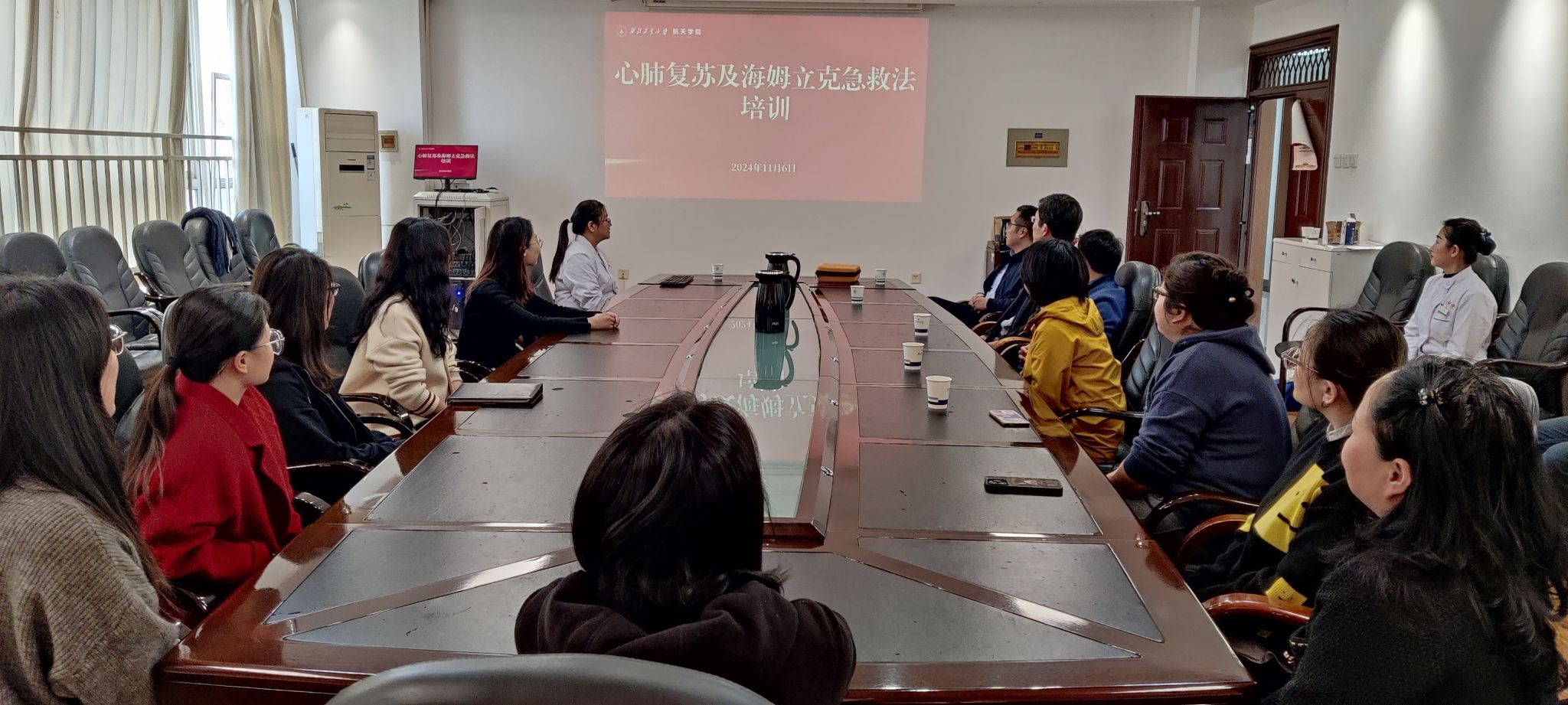 分工会特邀请校医院汤燕医生、梁乐乐医生、聂佩护士于11月6日下午在学院4号楼413会议室举办了一场心肺复苏及海姆立克急救法培训。此次培训受到了广大教职工的热烈响应和积极参与。培训由学院工会主席校金友主持。