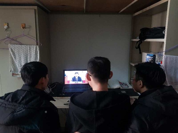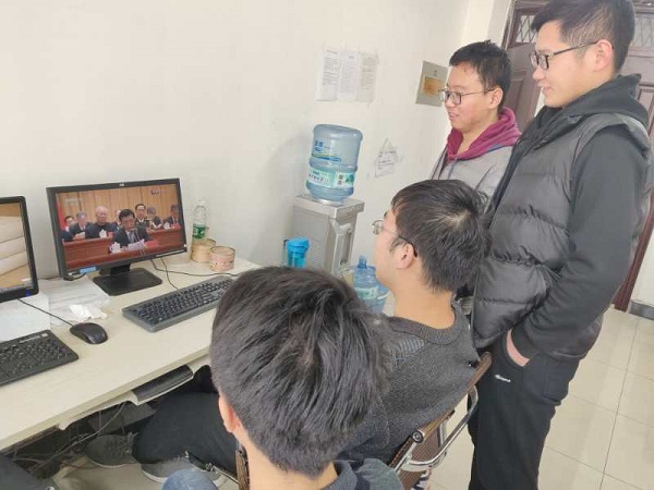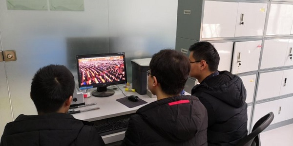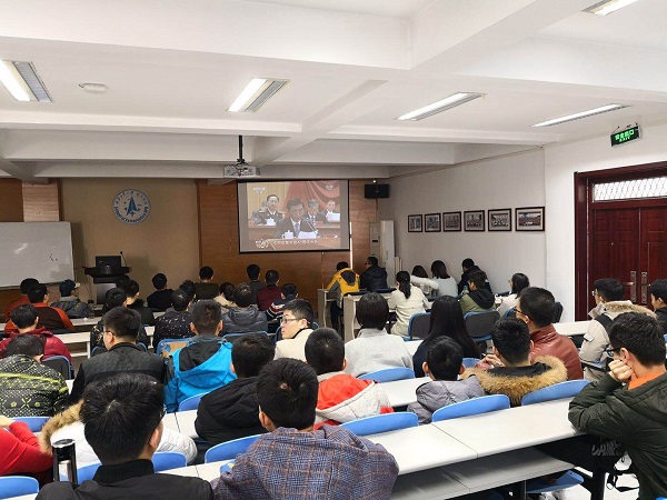 组织学生在学院四号楼6楼多功能教室观看大会直播。