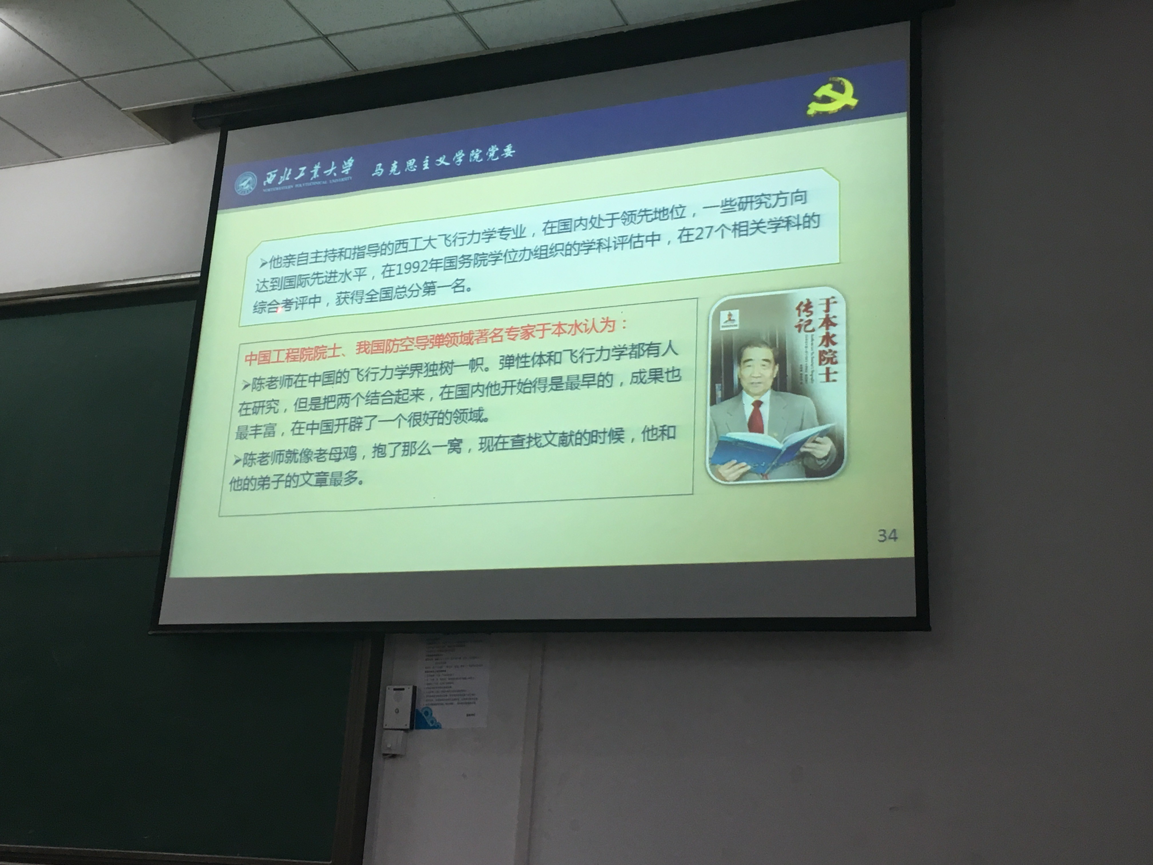 随后,鲁卫平通过几个先进事迹的分享,充分展现了陈士橹院士勤奋刻苦,追求卓越,勇于担当责任的精神品质,在场同学均深有感触。陈士橹院士服从组织决定,勇于担当责任,积极投身航天新征程,创建了西北工业大学宇航工程系,被誉为宇航工程系“三个老母鸡”之一。陈士橹院士严谨治学,厚德仁爱,践行教书育人职责,高瞻远瞩,培育新人,先后培养了我国第一、二位飞行力学博士和博士后,亲自培养硕士生、博士生、博士后50余名。他们当中的许多已经成为我国航天和国防科技工业领域的栋梁。陈院士还积极培育和锻炼新人,为后续发展积蓄了人才资源和科研工作经验。
