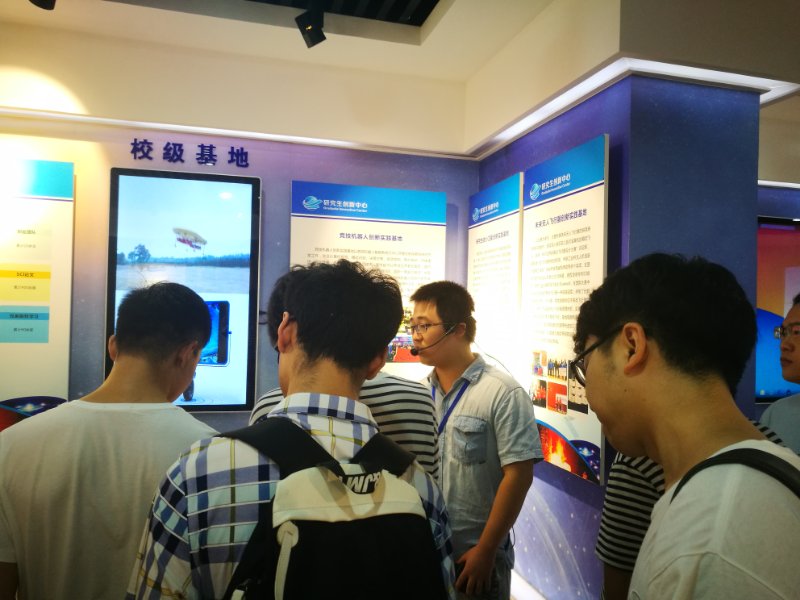 创业中心展览室中陈列着西工大历届创新团队的优秀作品,其中包括各式无人机、VR模拟飞行演示、地下探测车、浩劫格斗机器人等。在专业讲解员的介绍下,同学们了解了各个创新作品的创新点,其中地下探测车完全自动化,可以在环境恶劣的矿井下进行无人探测,为未来的地下作业提供了更先进的操作方式;部分同学还体验了VR模拟飞行操作,切身感受飞行员在高空飞行时的状态。
