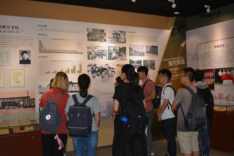 校史馆由校史厅、校友厅和放映厅三个部分组成,分别展出了西工大历史上不同时期形成的照片、史料、实物、模型等。在校史厅,讲解员带领同学们了解学校的发展史。从抗战时期的国立西北工学院,到华东航空学院师生从南京义无反顾的奔赴大西北成为西部大开发的先行者们;从古路坝灯火,到第一台机载计算机、延安一号,一张张照片,一段段历史,承载着西工大80年的风云变迁。同学们徜徉其中,仿佛与先贤对话、与前辈共鸣。