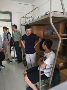 每到一个宿舍,学院领导和老师都和大家亲切交谈,勉励大家在今后的学习生活中要牢记“公诚勇毅”校训,践行“三实一新”校风,以杰出的航天人为榜样,脚踏实地,积极进取,勇于创新。同学们也纷纷表示会尽快适应大学的新环境和学习方式,同时也感谢学院各位领导和老师的关怀。