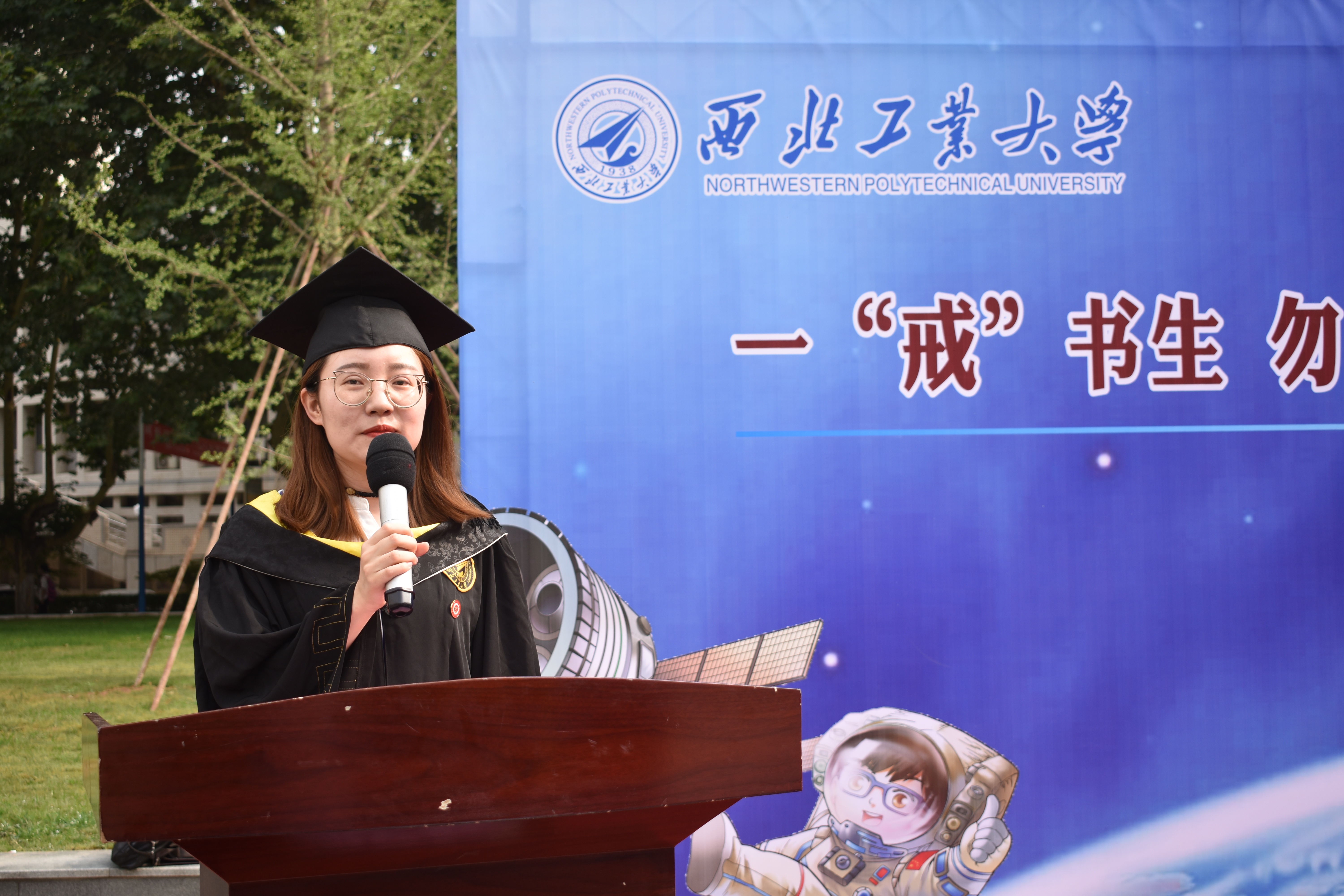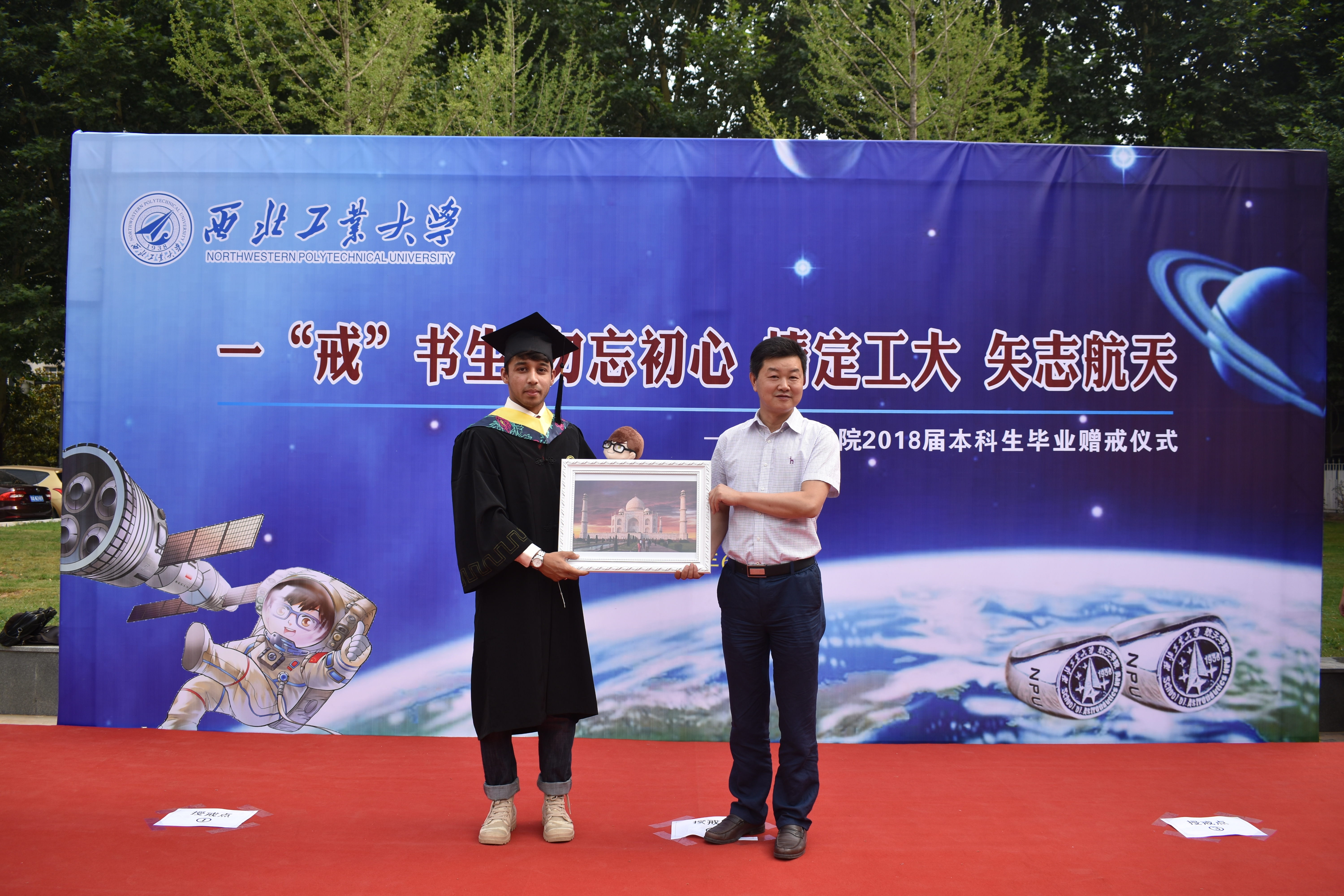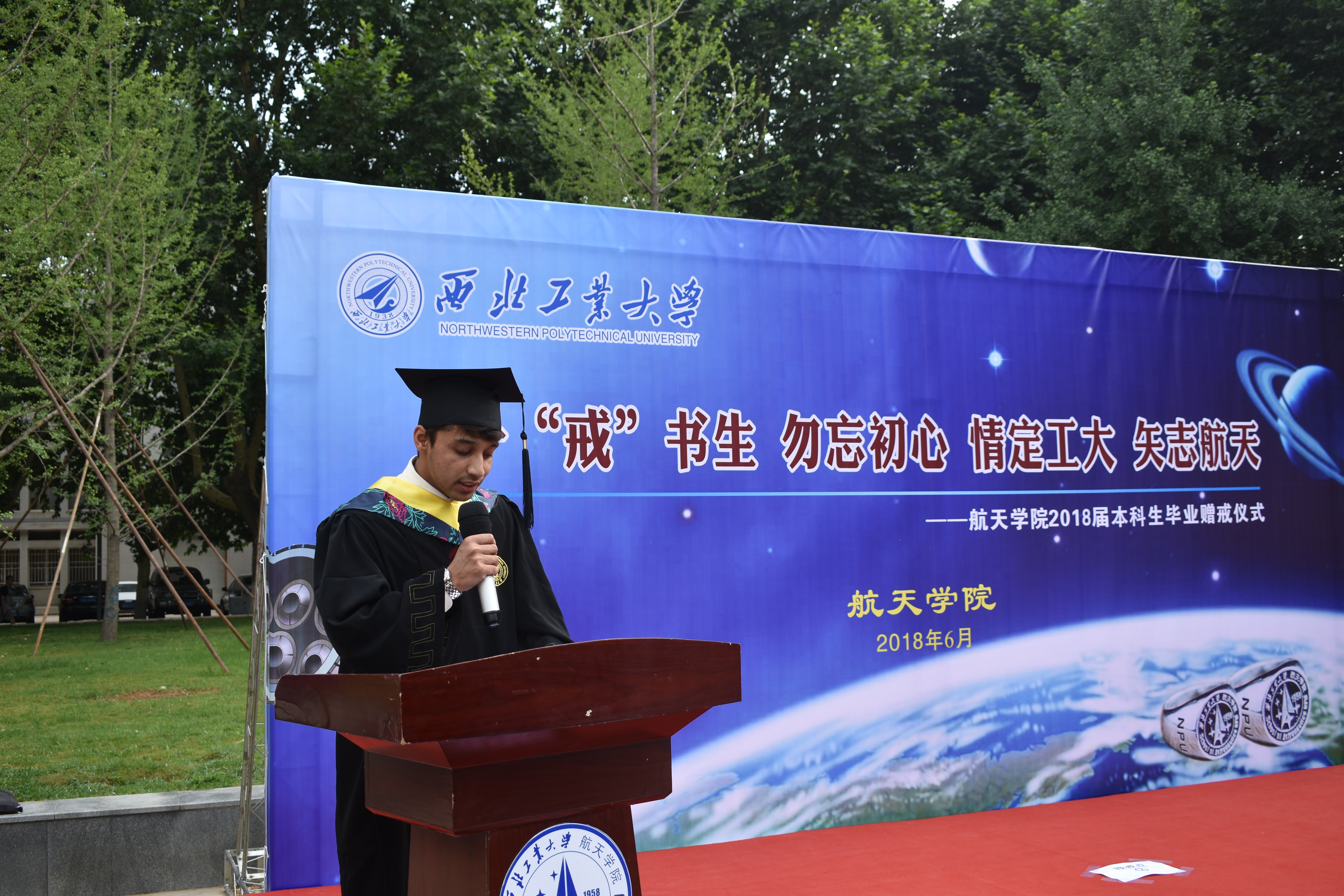 的学习与生活,更不会忘记学校、学院教给他们的点点滴滴,“一‘戒’书生、勿忘初心,情定工大、矢志航天”必将铭记于每一位同学的心中,他们的青春年华必在为国家、为人民的奉献中换发出绚丽光彩。
