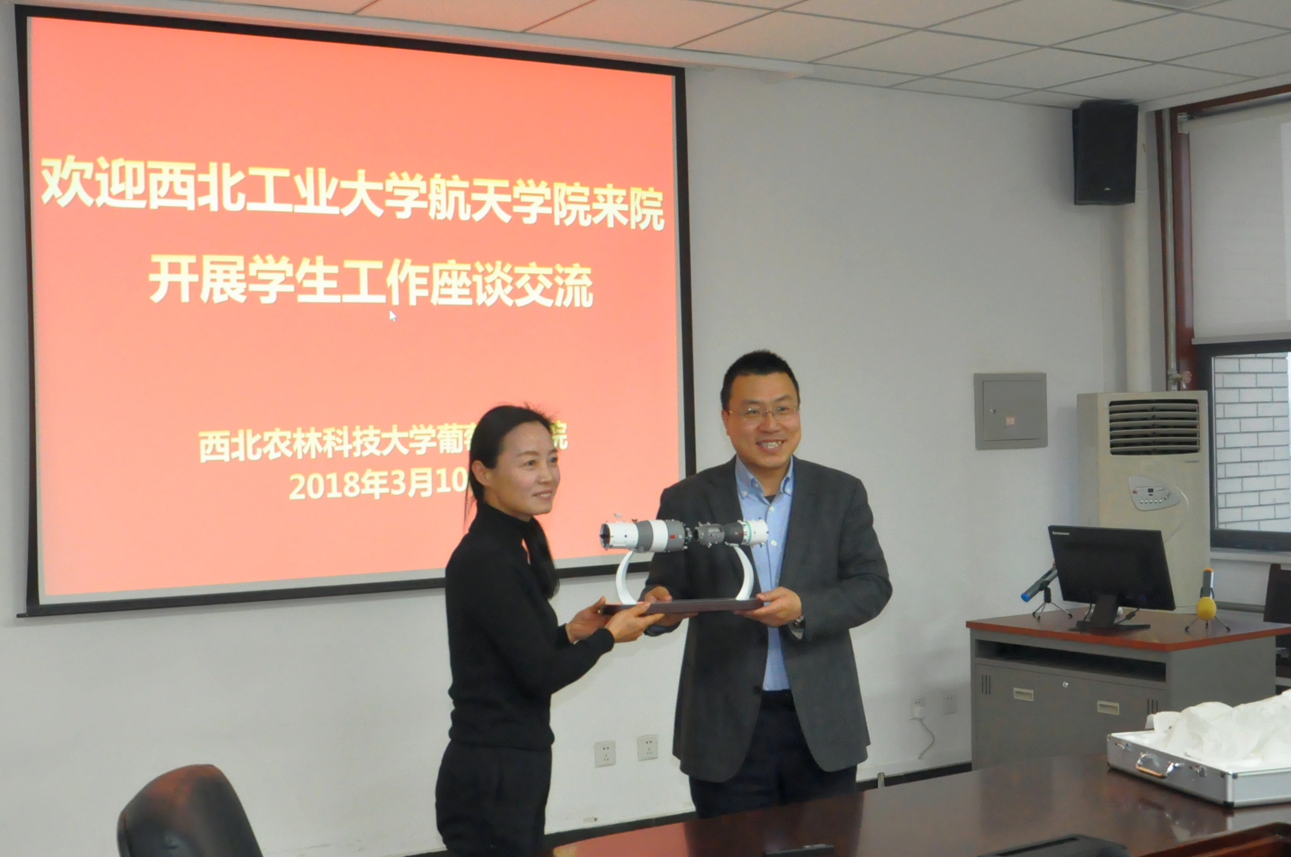 向葡萄酒学院赠送了神舟十号与天宫一号的交会对接模型,寓意两个学院从此可以亲密无间,共同前行;邓亚丽书记代表葡萄酒学院向成人电影
