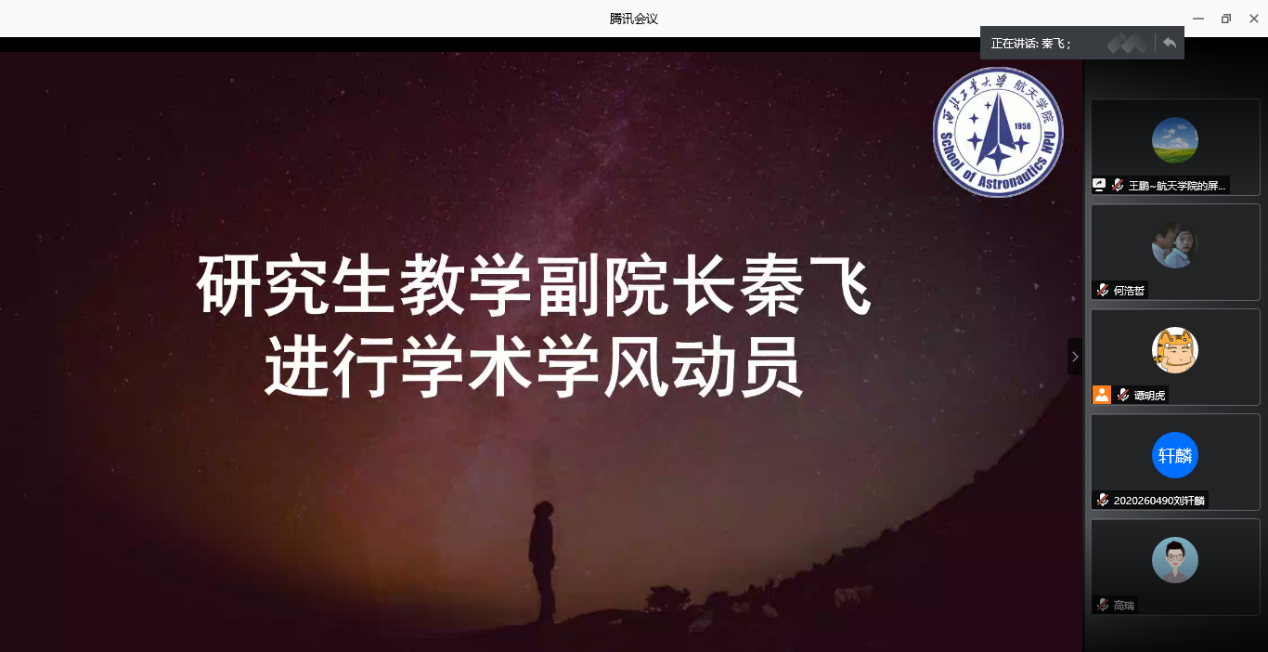 举行2020级研究生新生见面会。由于疫情防控要求,今年新生见面会改为线上进行。见面会上,学院领导与负责老师同2020级硕博新生分享航天精神,探讨交流如何在成人电影
